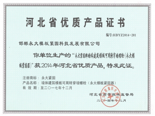 河北省优质产品证书