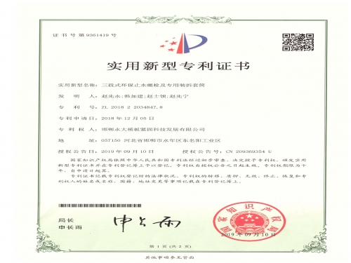 新型三段式止水螺杆新型专利