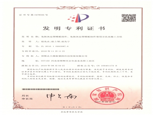 定型模板组件新型专利
